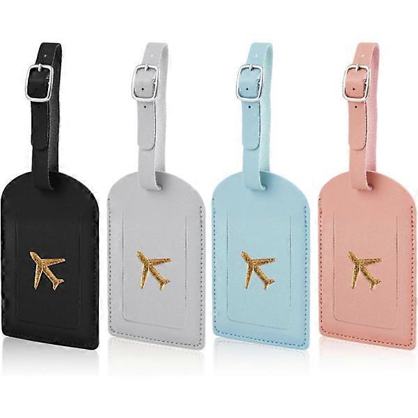pcs luggage tags, PU leather luggage tag with adjustable strap, suitcase tags, luggage tags with privacy protection, luggage labels (4 colors)