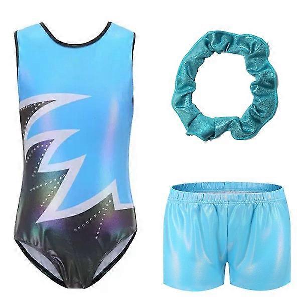 Girls' gymnastics leotards, glittery dance costumes, biketards, girls' workout clothes blue 5-6Y