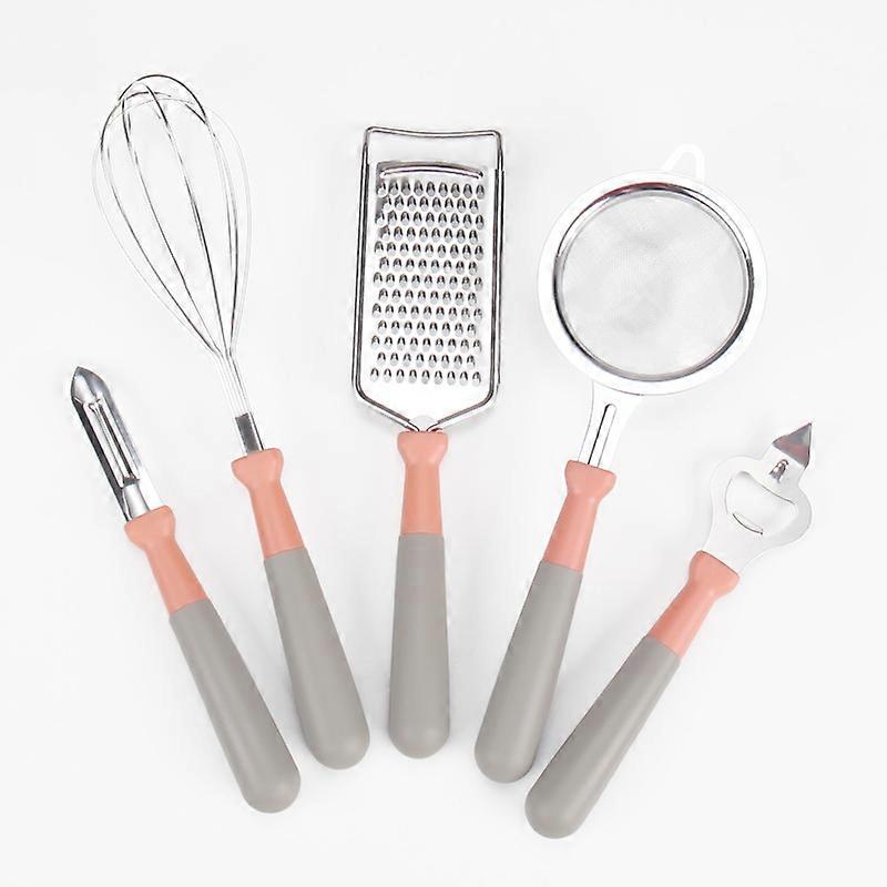 Stainless steel kitchen tool set (5 pieces): peeler, melon peeler, egg beater, strainer, grater, small kitchen gadgets