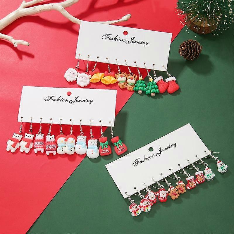 5Pairs Christmas Series Cartoon Resin Gingerbread Man Christmas Tree Earrings Set Cute Holiday Gift Accessories