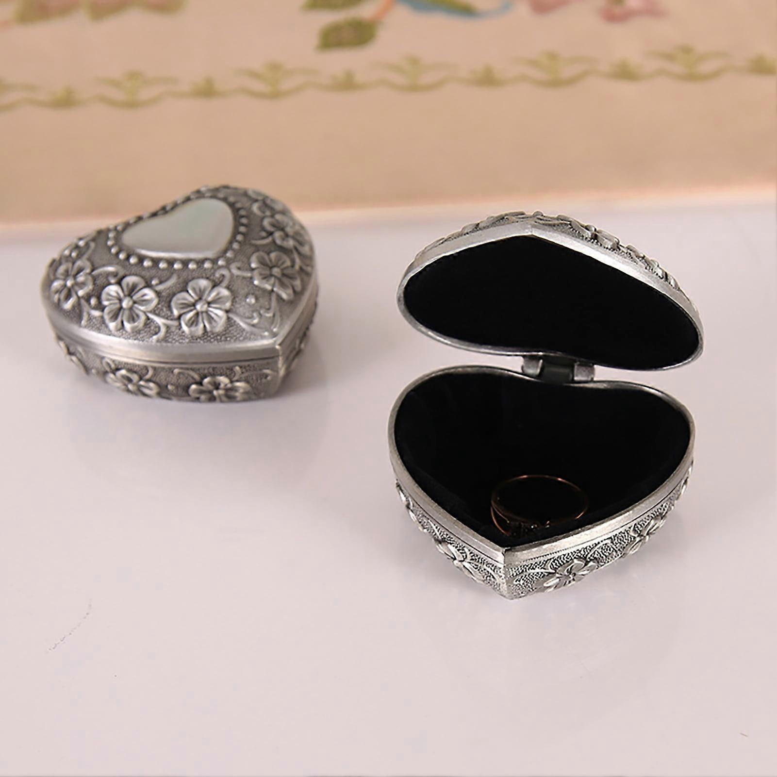 SUSUchens Gift Box Compact Decorative Heart-shaped Romantic Women Girls Jewelry Case for Valentine's Day Silver