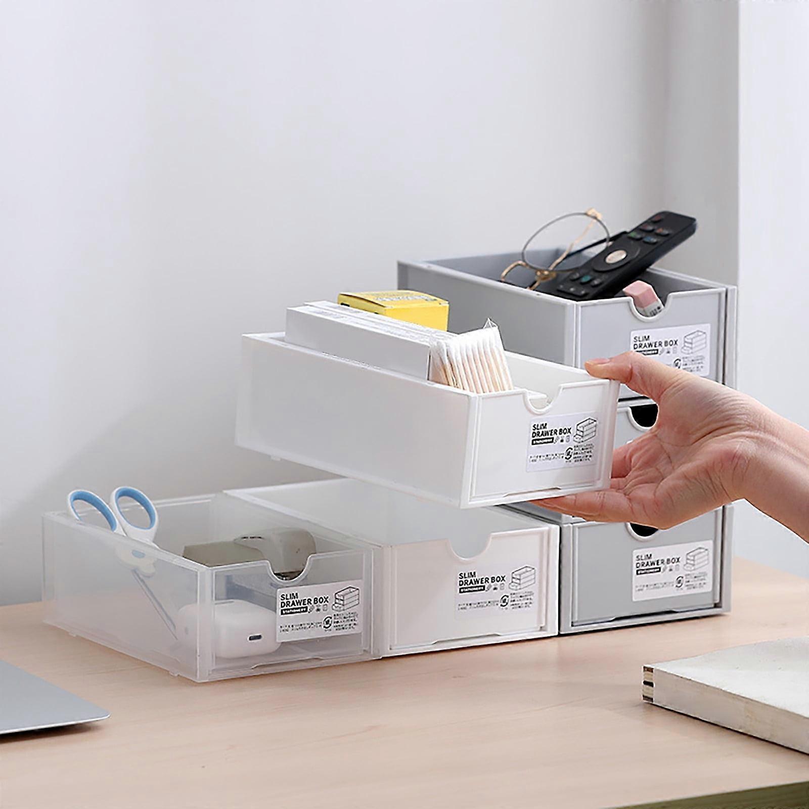 TUOBARR Small Desk Organizer, Stackable Drawers, Clear Storage Box, Desktop Organizer for Office & Home, White, Compatible with Wide Open Version