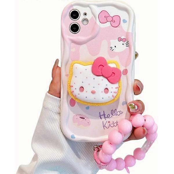 Cute Cat Case Compatible with iPhone 12, Pink Kawaii Stand & Pendant, Clear Soft TPU Cartoon Cover