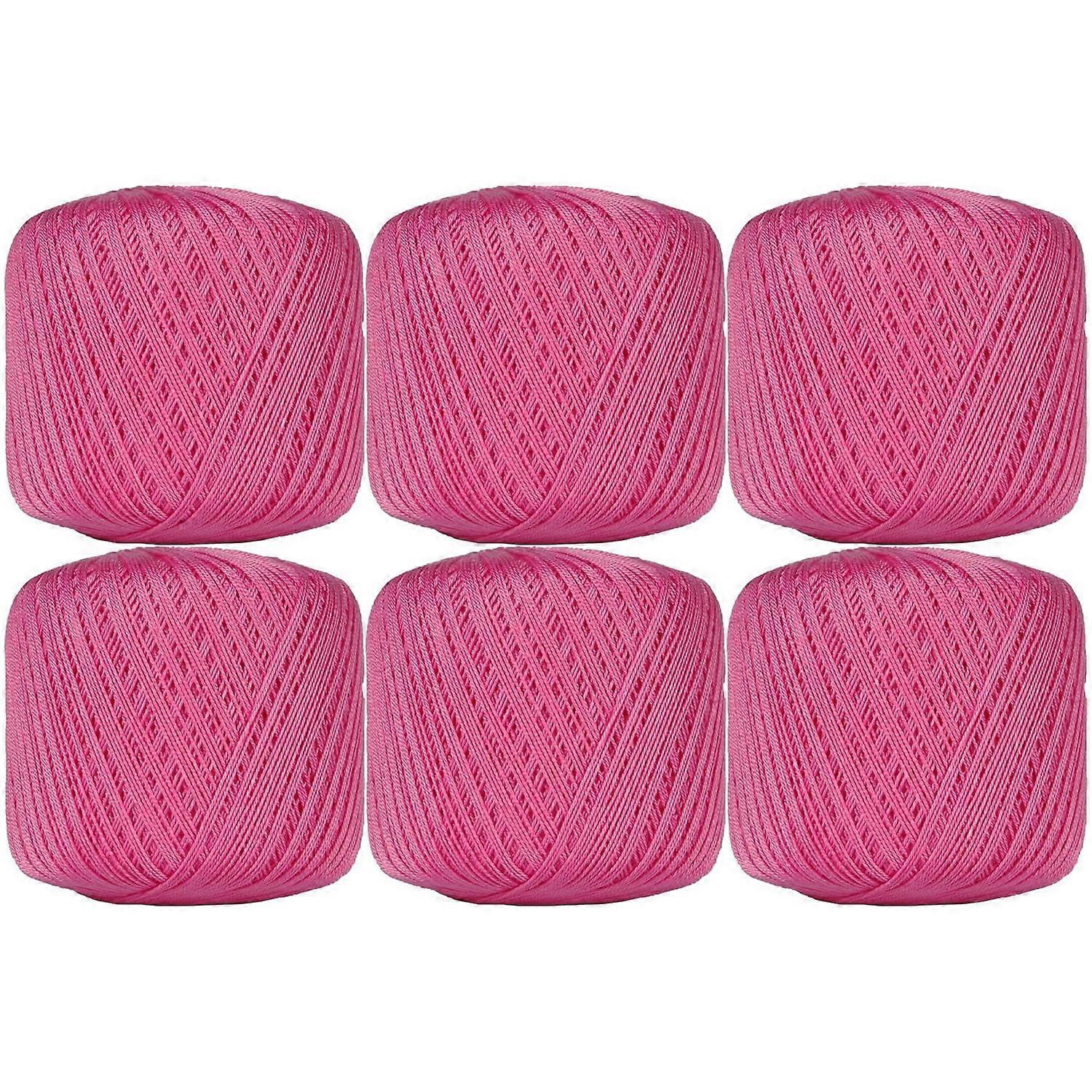 Threadart 6 Ball Pack SIZE 10, Color 35 HOT PINK - 100% Pure Mercerized Cotton Crochet Thread, 50gm Balls, 175 Yds Each