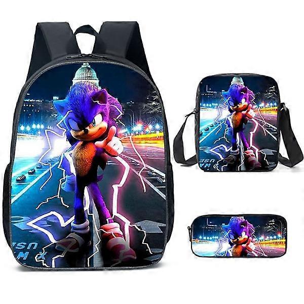 SONIC backpack Sonic elementary school backpack 3-piece anime cartoon backpack shoulder bag pencil bag Style U three-piece