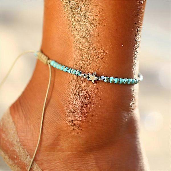 pcs Boho Turquoise Anklet Silver Star Anklet Beach Foot Jewelry