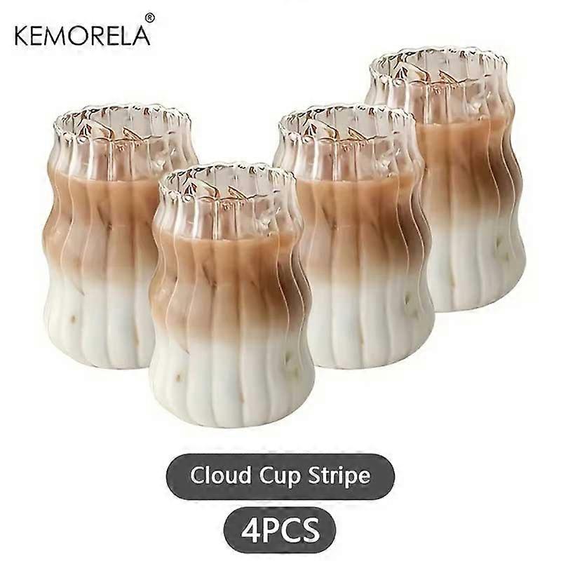 4/6PCS 500ML INS Style Glass Cup Set Heat-Resistant Tumbler Drinkware Transparent Stripe Design for Tea Juice Milk Coffee Water