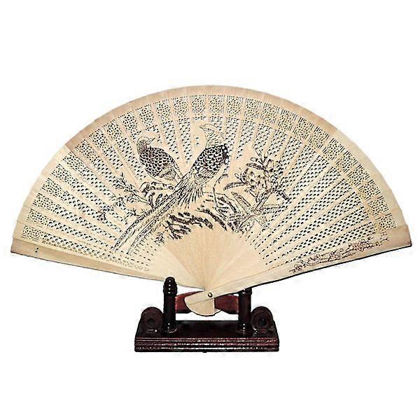 Wooden fan with punched motif [M21] - Birds Falk Trees