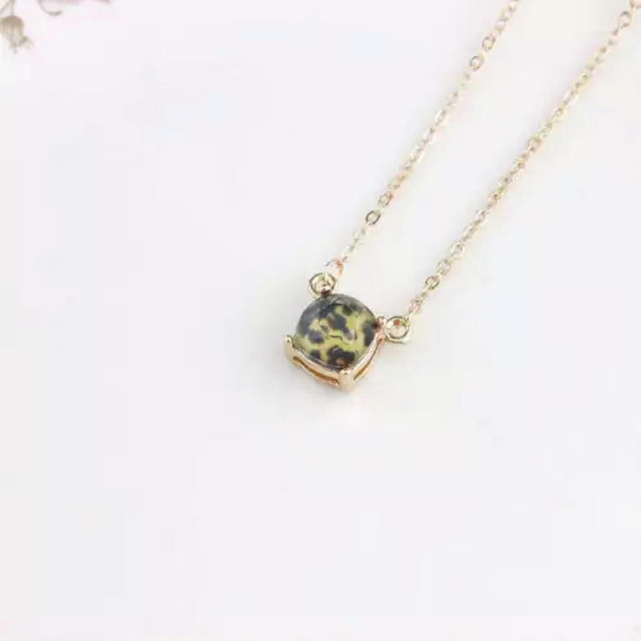RSAMD Gold Tone Buffalo Cushion Cut Pendant Dainty Short Chain Choker Women Necklace -Leopard