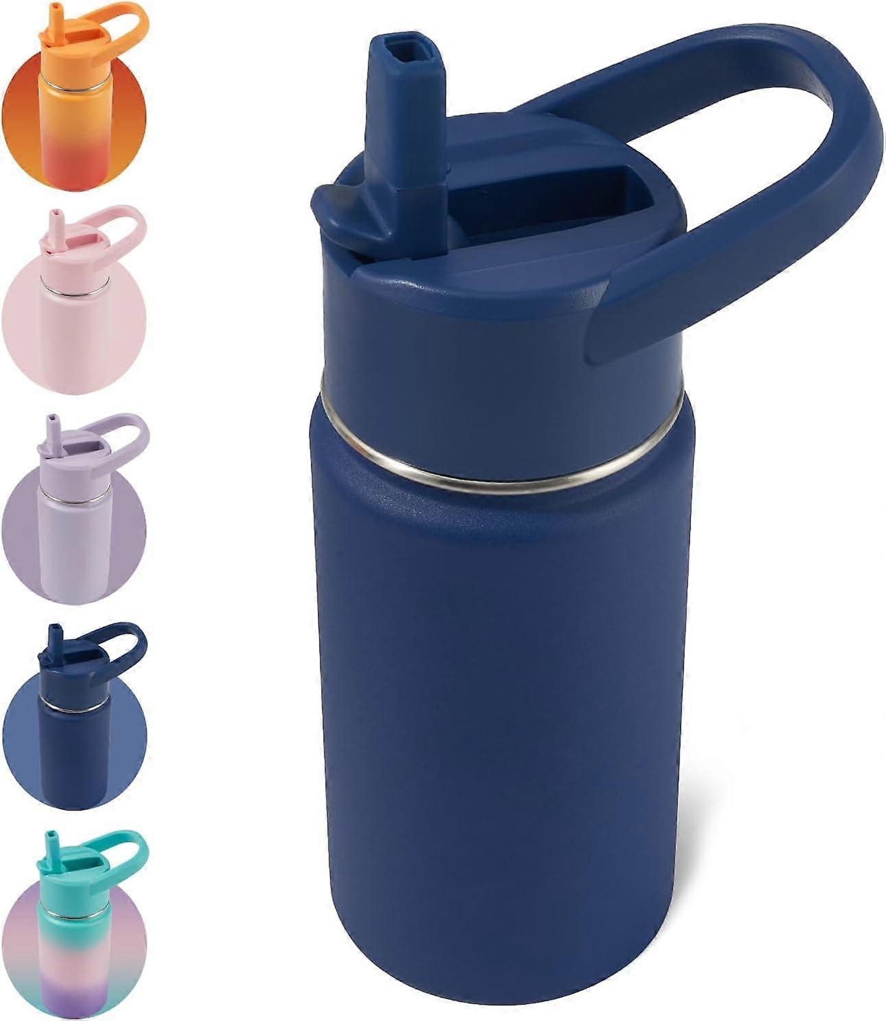 12oz Kids Water Bottle for School Boys&Girls, Leak-Proof Toddler Water Bottle, Stainless Steel Vacuum Insulated Bottle with Straws Lids, Aurora