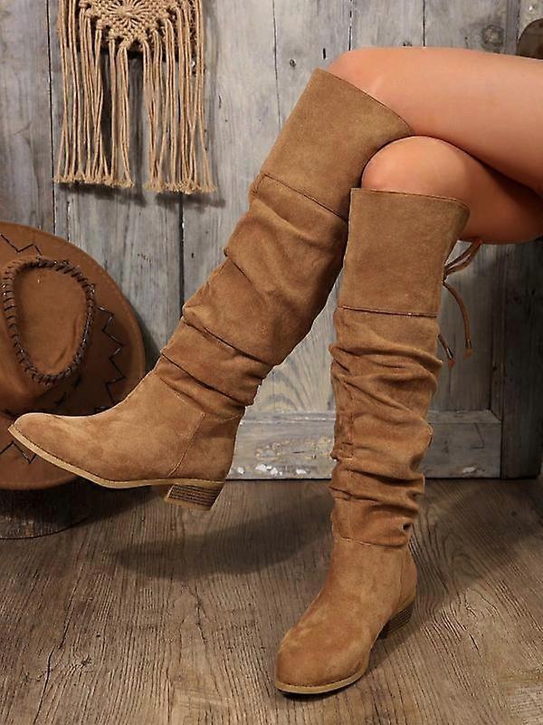 Women's Fashionable Solid Color Pointed Toe Knee Boots, Casual Western Style Boots for Daily Wear, Trendy All-match Boots for Fall & Winter,