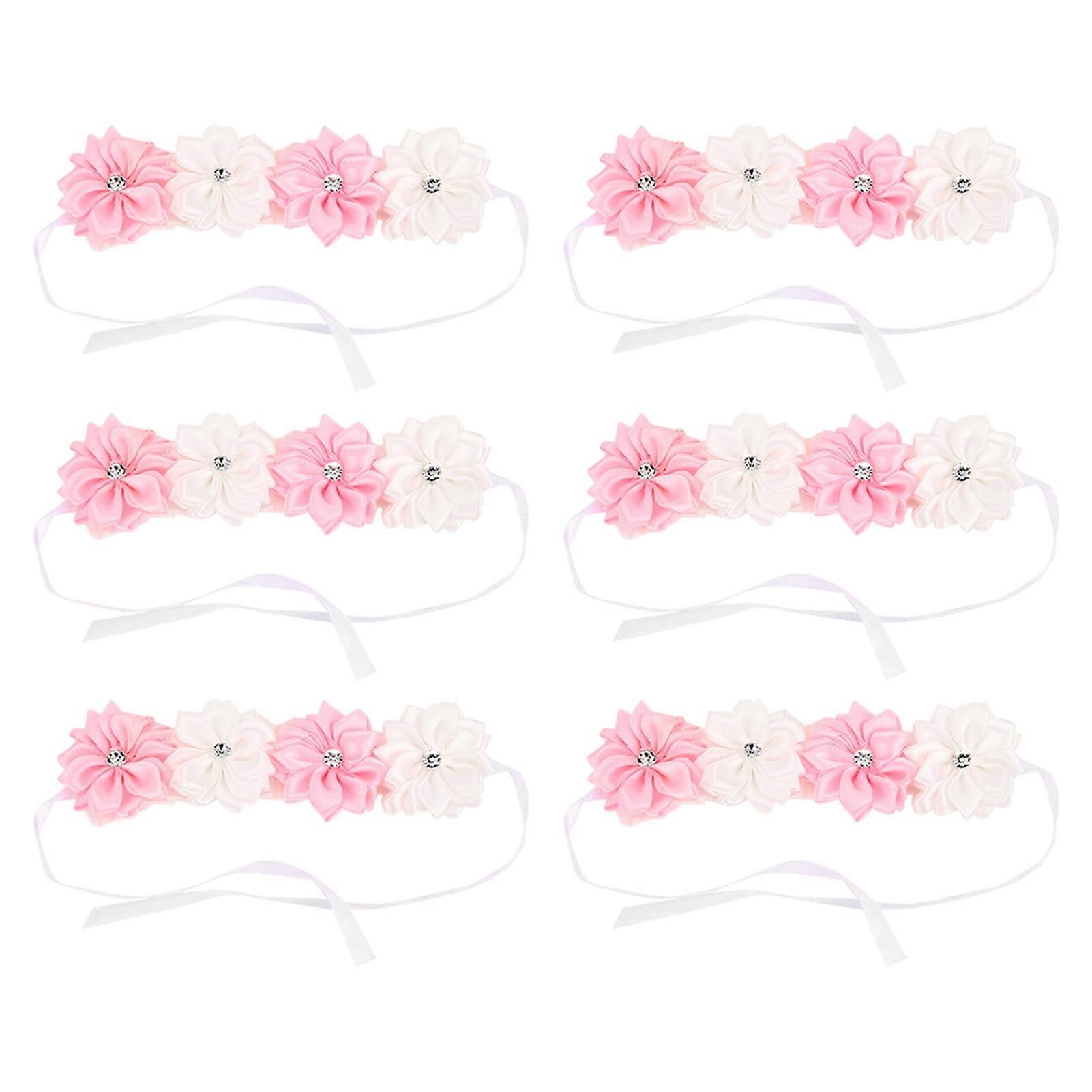6Pcs Wrist Flower for Weeding, Beautiful Bride Bridesmaids Simulation Ribbon Wrist Flower Wedding Decoration Accessories(Pink White)