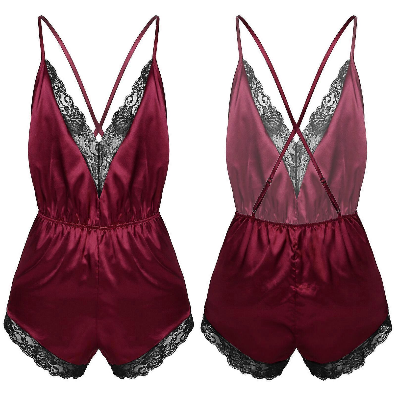Mens Pajamas Silky Satin Sleepwear Lace Trim Boxer Shorts Jumpsuit Cami Dress