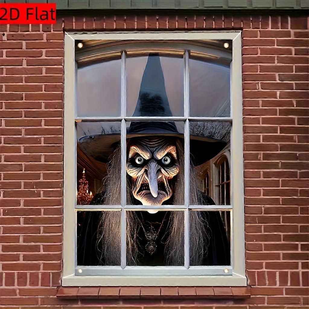 1pc creepy Halloween witch window doorplate, no electricity required, indoor/outdoor use