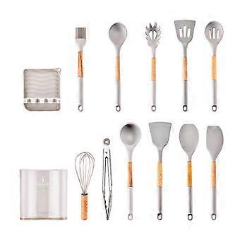 11-piece silicone kitchen utensil set with wooden handle, heat-resistant tail sleeve, silicone spatula and spoon cooking utensil set