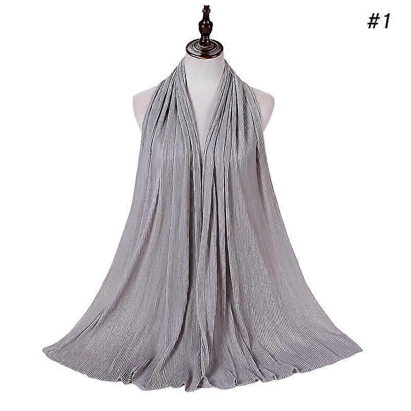Women Pleated Crinkle Hijab Scarf Plain Jersey Shawls Muslim Wraps Elasticity