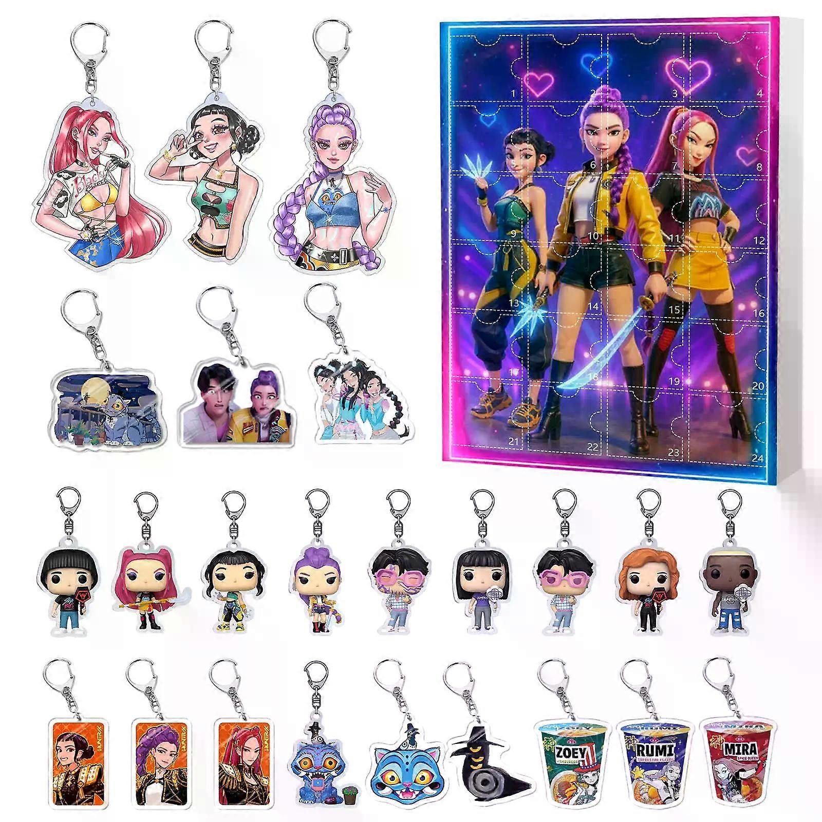 Christmas 24 DAYS Countdown Calendar Blind Box for Kpop Demon Hunters Group, Anime Figure 2D Flat Acrylic Keychain Gift Box ?