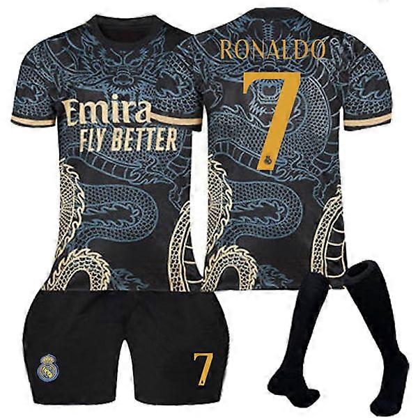23-24 Real Madrid Dragon Black Special Edition Football Shirts Kids Football Kit No.7 Ronaldo L