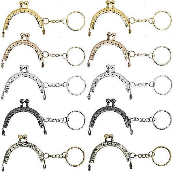Kiss Lock Vintage Metal Wallet Frame 5cm Half Round Embossed Coin Wallet Frame with Key Ring 10pcs (5 Colors)