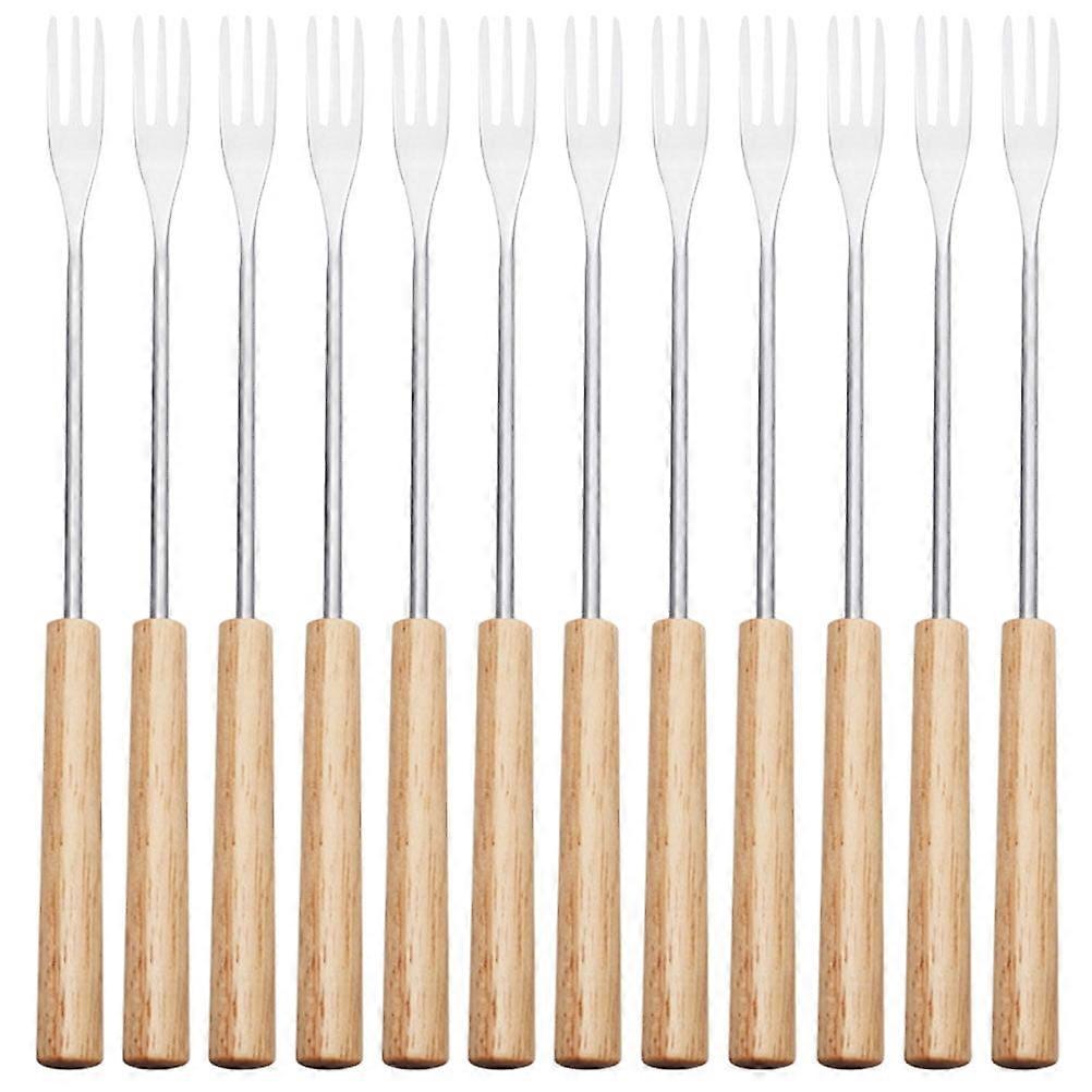 12 Pcs Chocolate Fondue Fork Fruit Forks Decorate Household Wood Stainless Steel