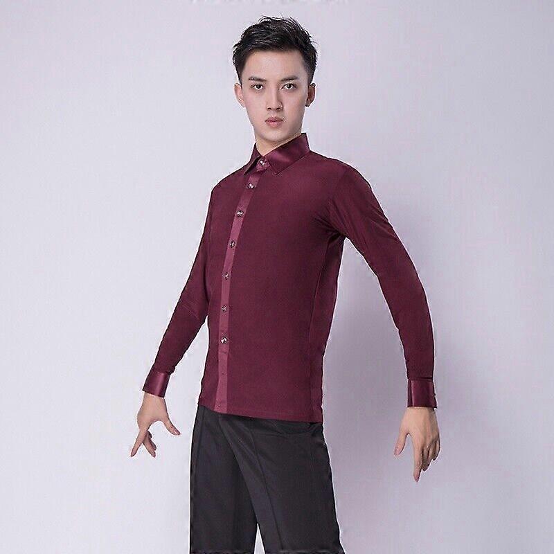 Mens Latin Dance Shirt Tops Ballroom Modern Salsa Samba Stretch Long Sleeve Slim