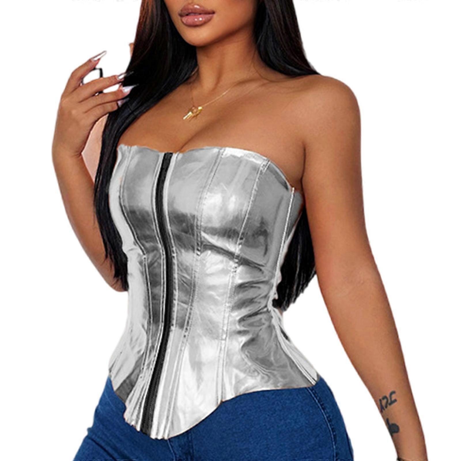 Modern Elegant Bustier Hourglass Print Shaping Top for Women Bustier Golden/Silver Shapewear Comfort for Ladies Silver S