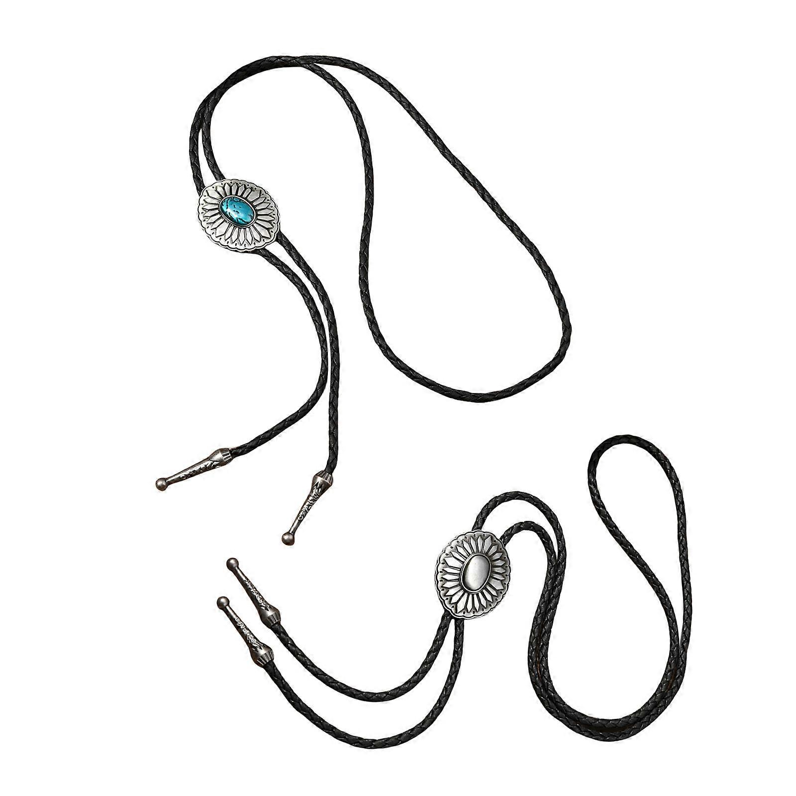 Western Rodeos Bolo Tie Necklace for Men and Women Metal Flower Pendant Faux Leather Cord Necktie Festivals Neckwear Multicolor
