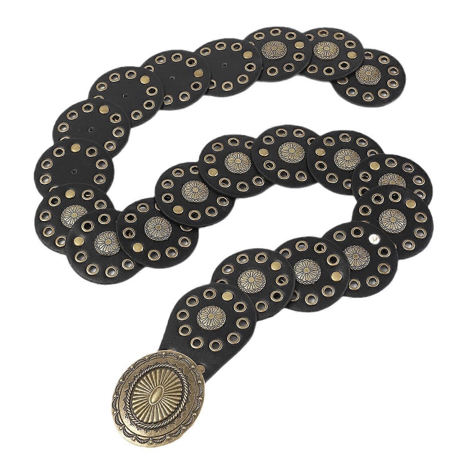 Adult Western Waist Belt with Round Disc Buckle Adjustable Length Waistband PU Waist Belts for Rock Fan Wear Resistant Multicolor