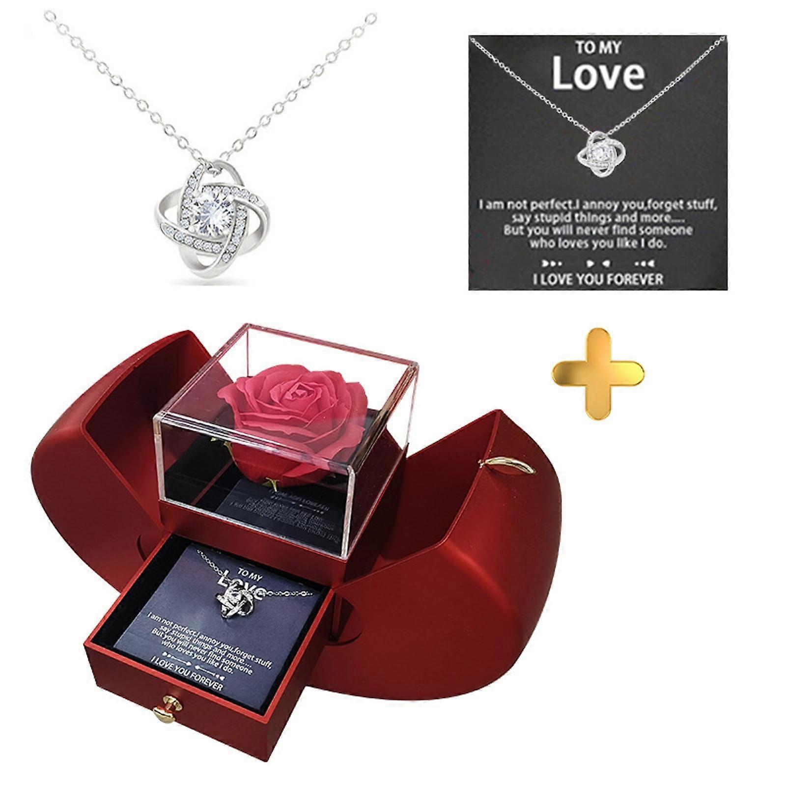 Fruit Shape Preserved Red Rose Box with Necklace & Card, Gifts for Her, Mom, Women, Girlfriend, Wife, Birthday, Valentine’s, Christmas, Mother’s