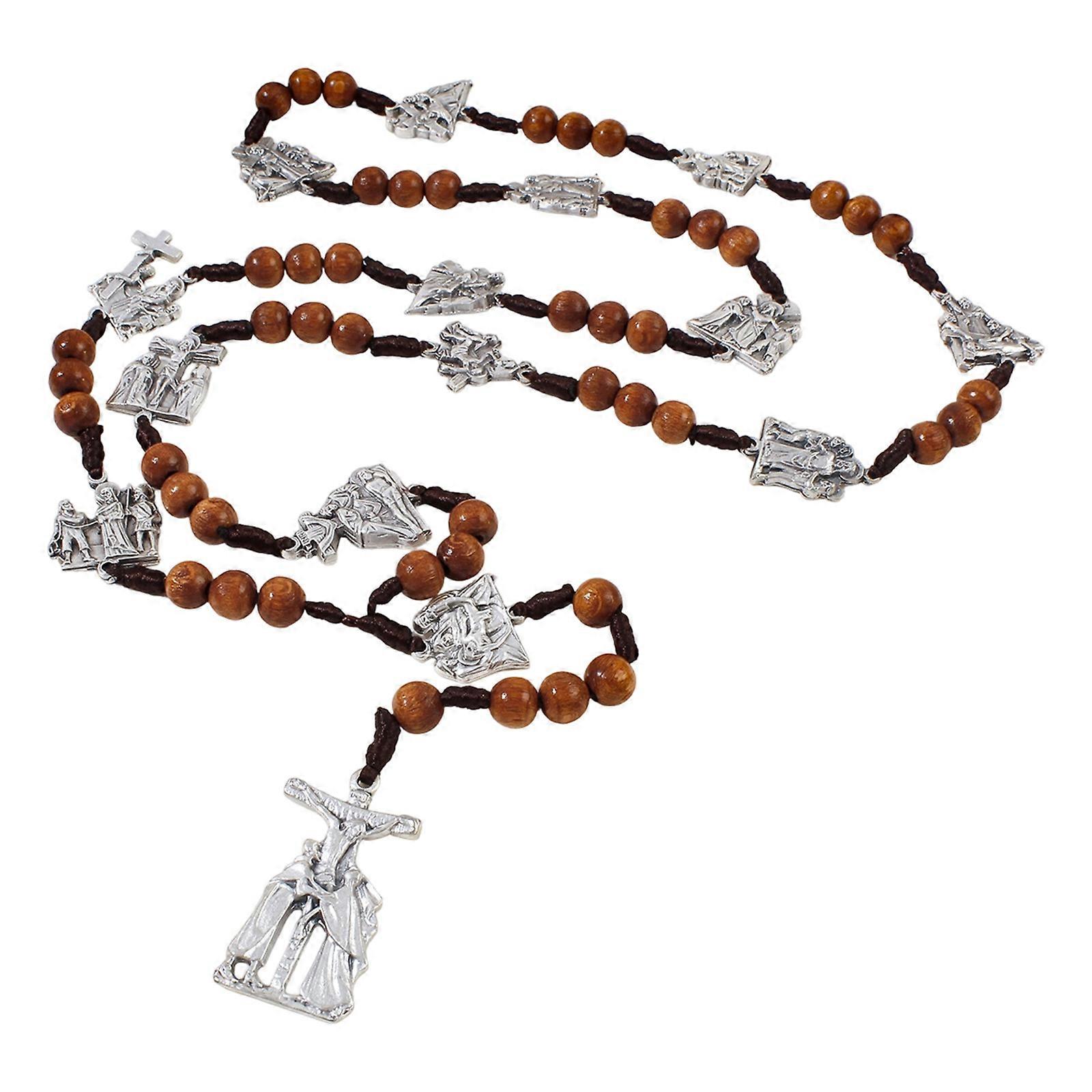 Rosary Catholic Wooden Beads Necklace with Miracles Medals Crosses Crucifix for Men,Women Gift First Communion Rosary Multicolor