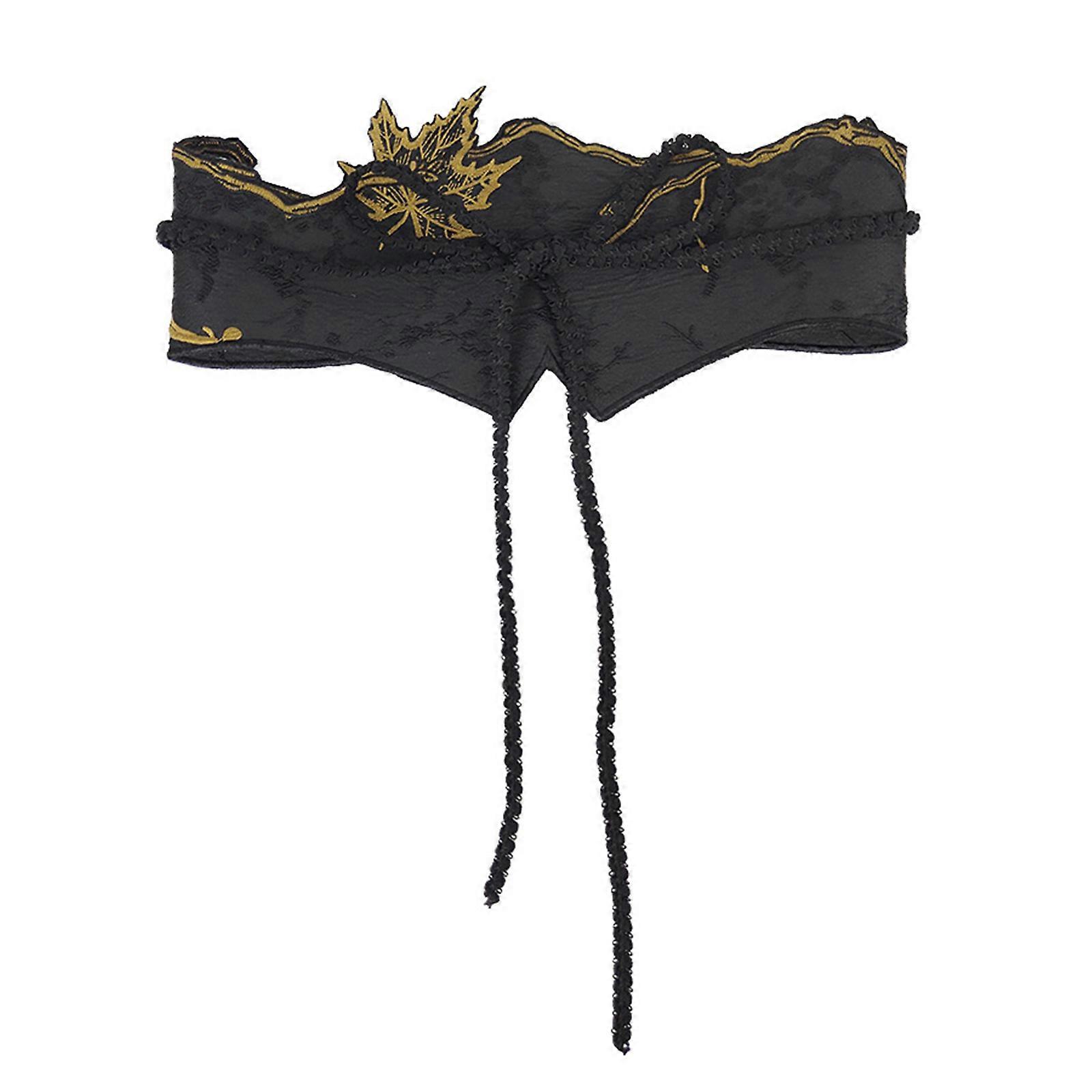 Adjustable Hanbiuk Waist Sash With Maple Embroidery Breathable Fabric Belt For Historical Cosplay Daily Wear Multicolor