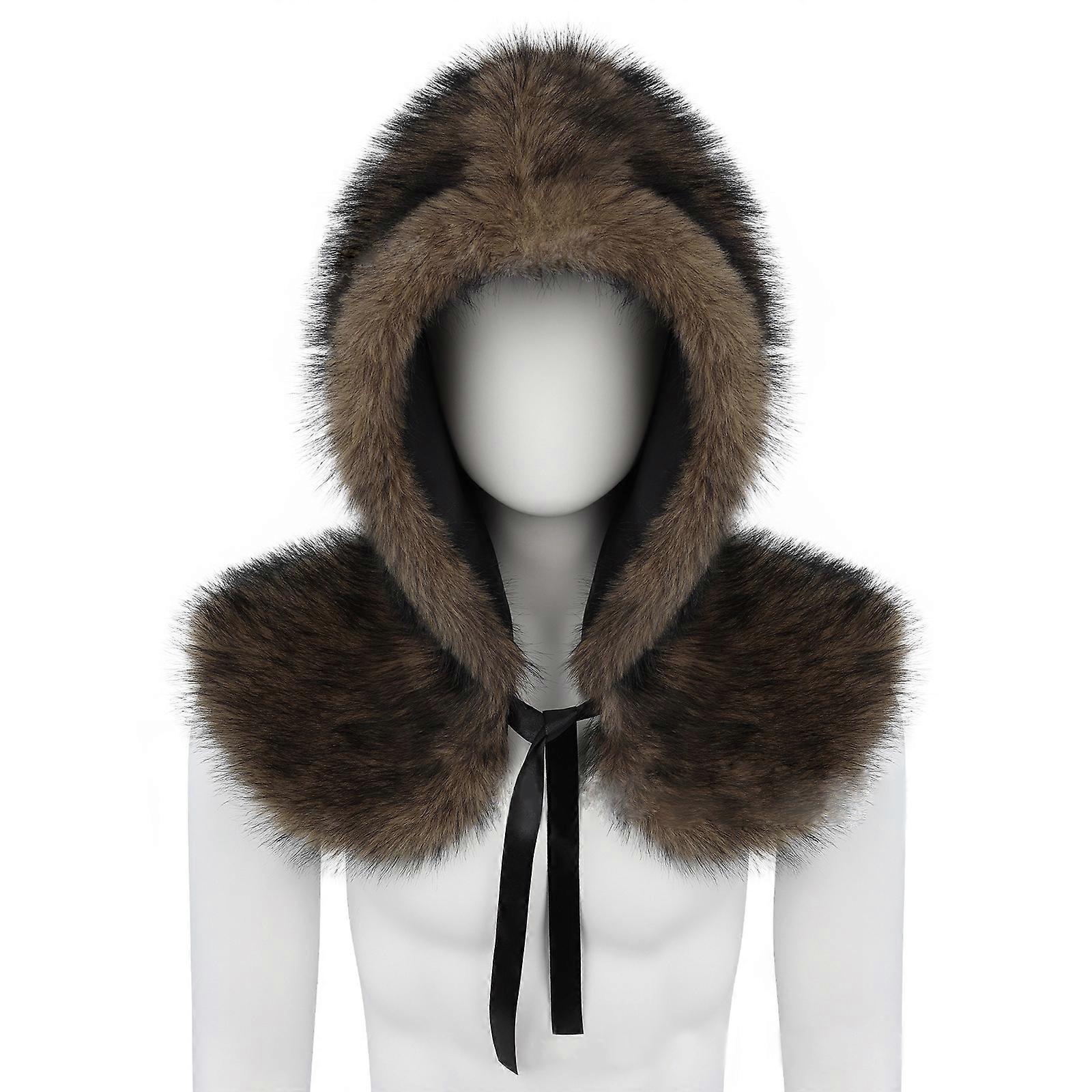 Warm Stylish Acrylic Faux Plush Shawl Scarf with Hood Adjustable Design for Winter Fashion Costume Parties Grass yellow