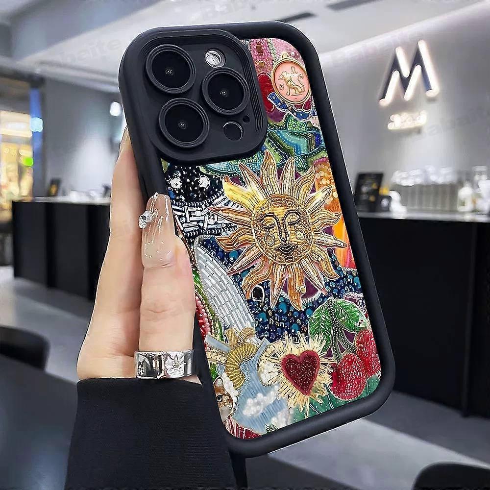 Retro Sun Planet Cocktail Phone Case Silicone Phone Case For iPhone 17 Air 17 16 15 14 13 12 11 Plus Pro Max Shockproof Cover