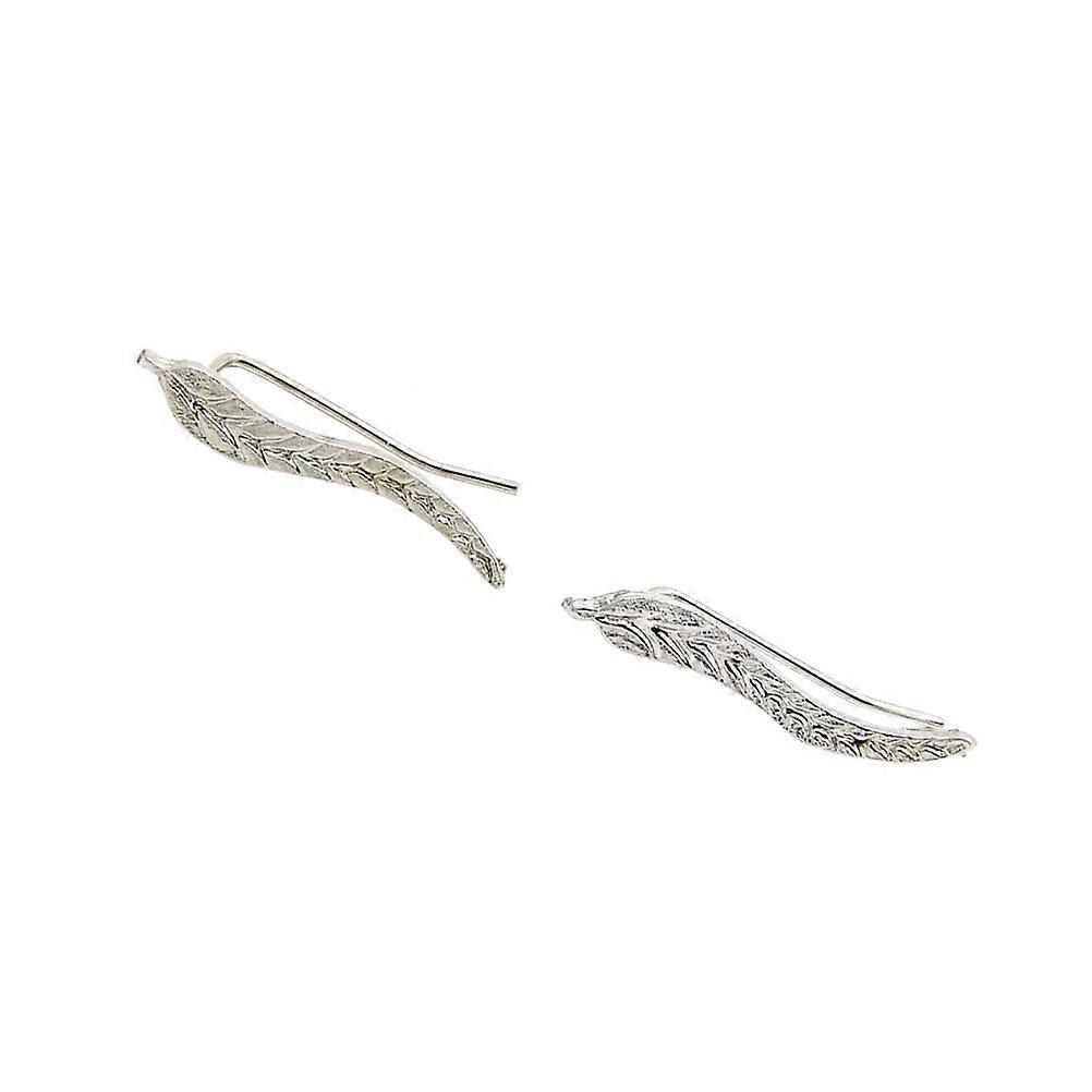 Lotatory 1 Pair Chic Leaf Ear Climbers Delicate Fashion Crawler Cuff Stud Earrings Jewelry for Women (Silver)