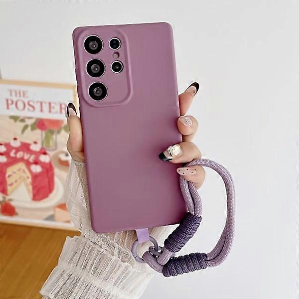 RYI_Wrist Strap Candy Color Soft Silicone Case Lanyard Matte Shockproof Protection Compatible with S22 S24 Ultra Plus Mobile Case Dark Purple S22