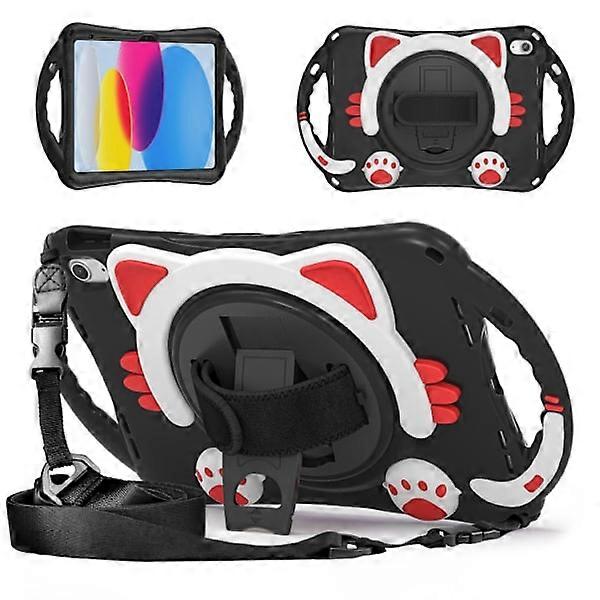 Compatible with iPad 11 11th Gen / 10.9 10th Gen 2022/2025 Cute Cat King Kids Shockproof Silicone Case Black Red