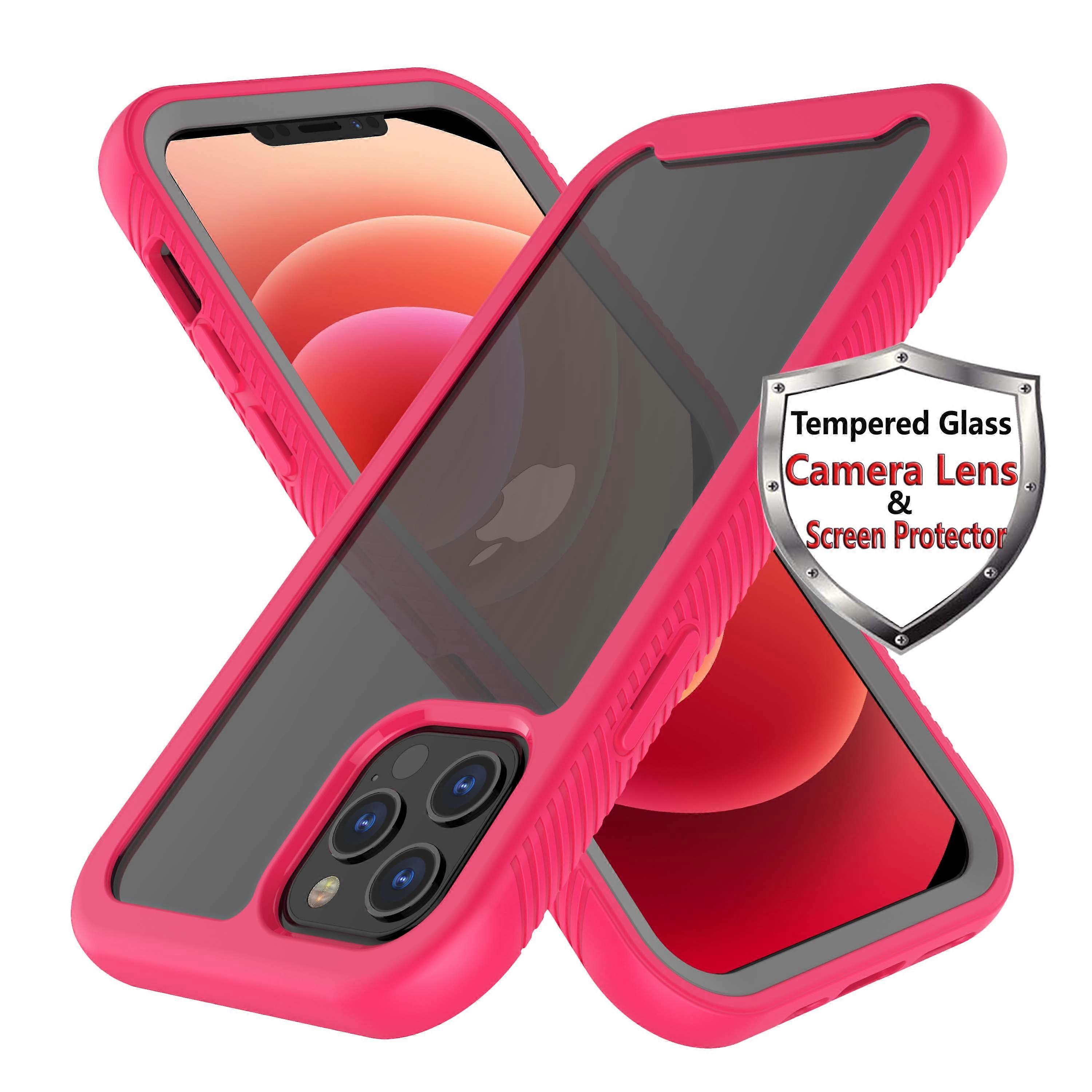Compatible with iPhone 12 Pro Max Case, Tempered Glass Camera & Screen Protector, Slim Transparent TPU Hard Case - Rose