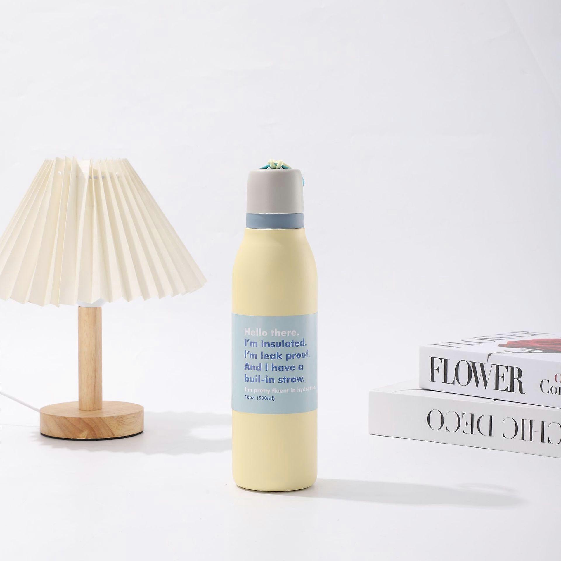 Macaron Double-Layer Stainless Steel Vacuum Insulated Travel Straw Cup Portable Outdoor Fashionable Simple Design with Rope