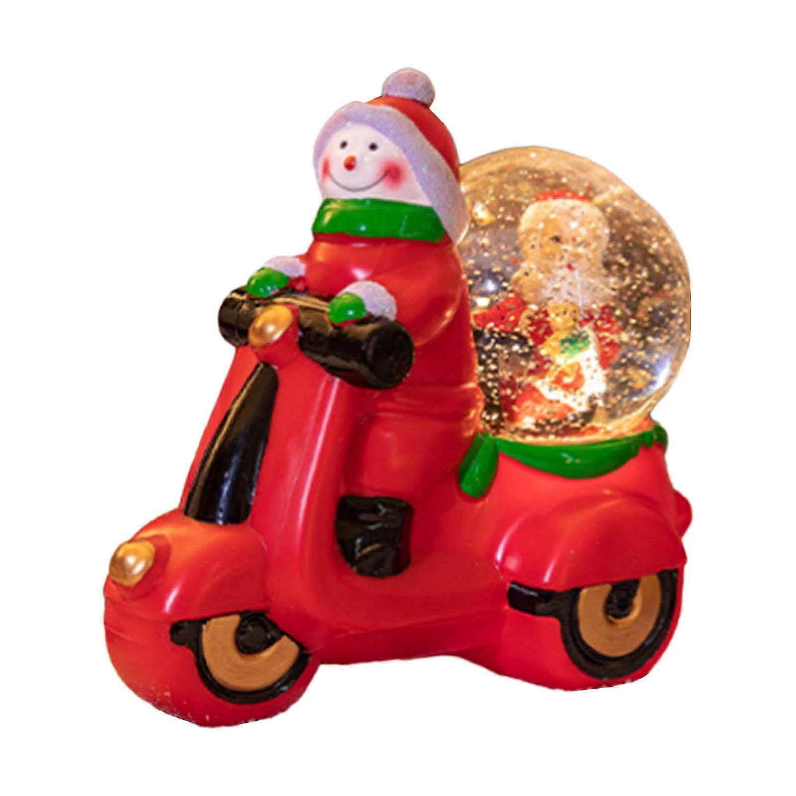 Features: Crystal ball decorations with snowing interior create a romance Christmas atmospheres. Handmade, delicate and realistic; Rotatable motorcycle model for added fun; LED lights illuminated the night, making it more eye-catching. People who love Christmas, people who collect ornaments, motorcycle enthusiasts. Home decorations, office display, shop window display, coffee shops decorations, etc. Specifications: Material: PVC Size:approx 11x20x20CM/4.33x7.9x7.9in Patterns: Santa/ Snowman Package Includes: 1PC Festive Ornament note: Due to the problems of lighting effectsand shooting angles, there will be certain tolerances in the product, please understand. Please allow 0-2mm error due to manual measurment.