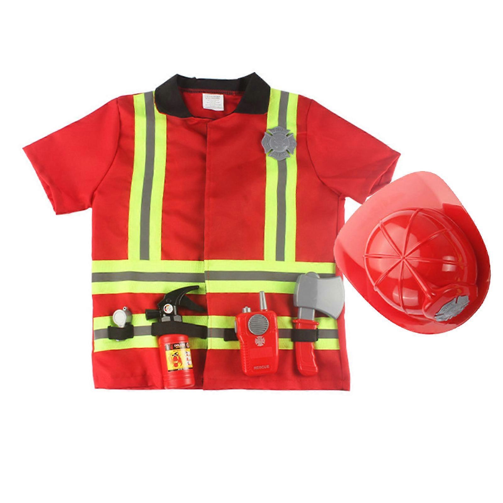 7pcs Washable Kid Fireman Costume for Boys,Girls,Toddlers,and Children with Complete Firefighter Accessories Pretend Toy Multicolor