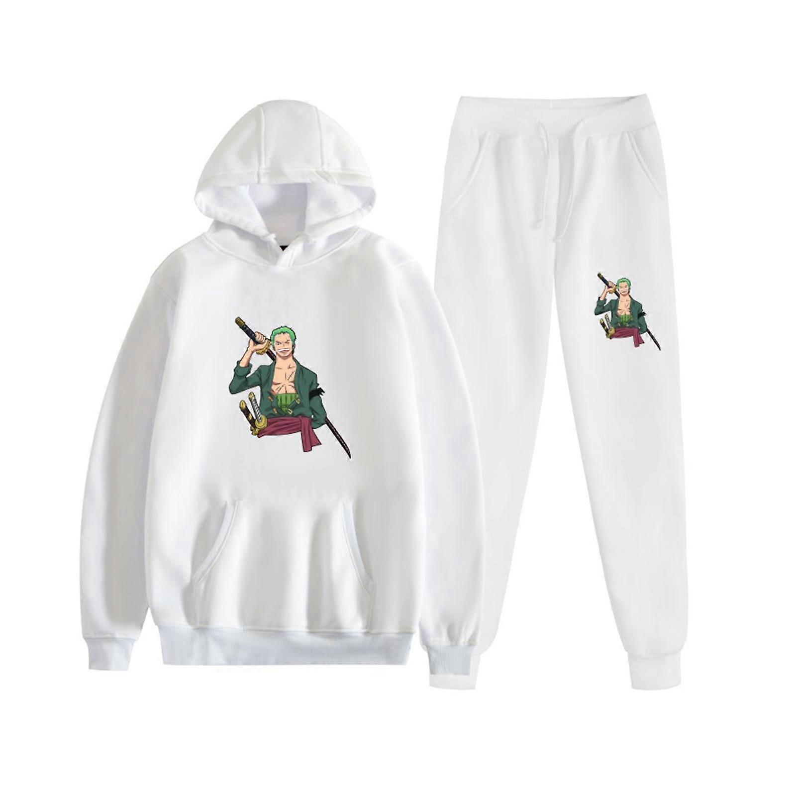 Japanese Anime Hoodie Sets Men Women Tracksuit Sets Casual Sweatshirt Pullover Top Pants 2Pcs Sets Harajuku Streetwear White D XL