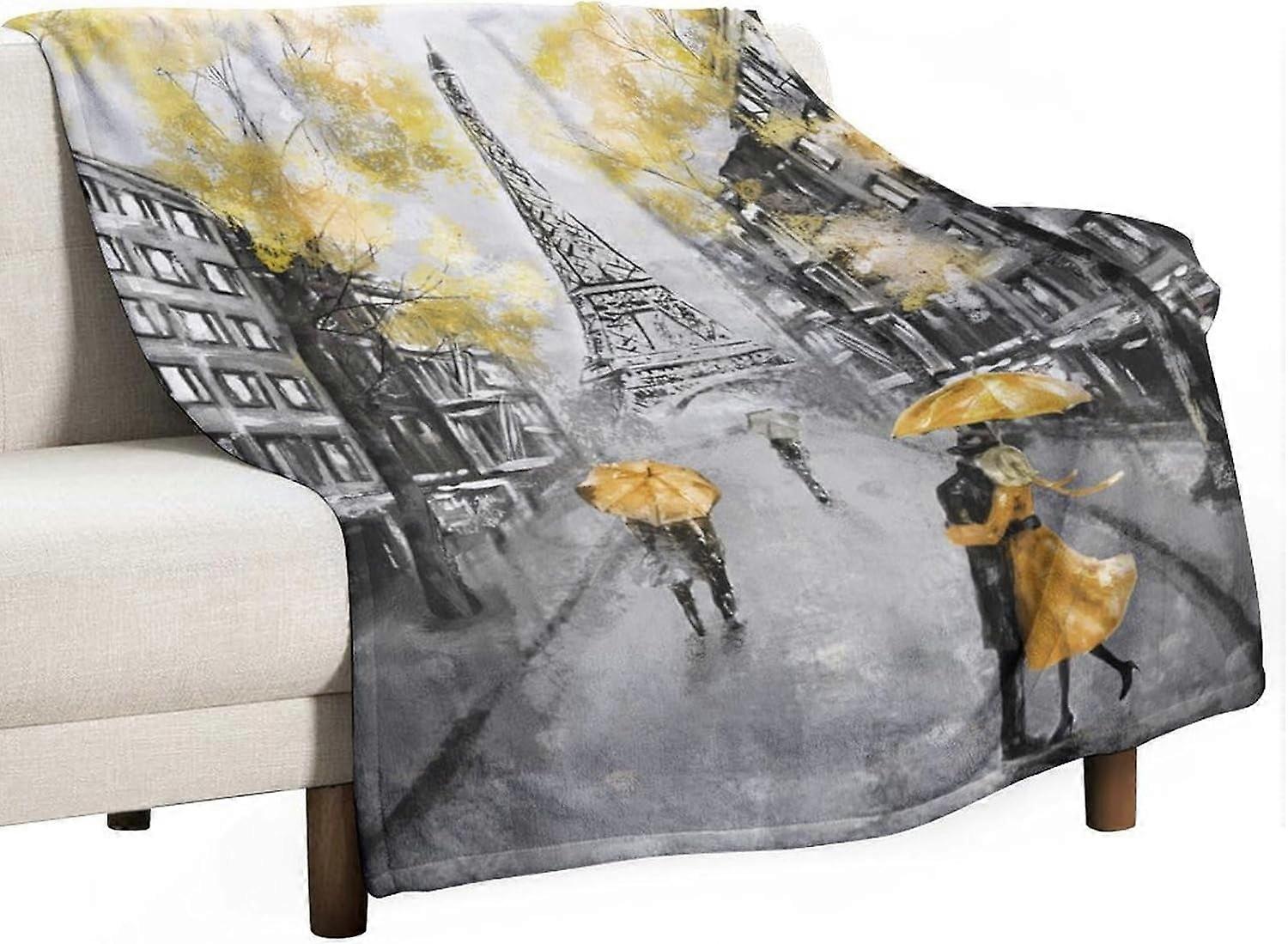 Paris Blanket Vintage France Scenery Eiffel Tower Couple Yellow Tree Soft Lightweight Throw 40x50in for Bedroom Living Room Sofa