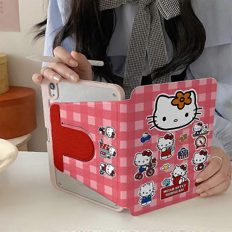 Plaid cartoon kt cat compatible with ipad10 protective cover pro2024 pen slot air6/5 female MINI6 drop-proof 10.2 tablet