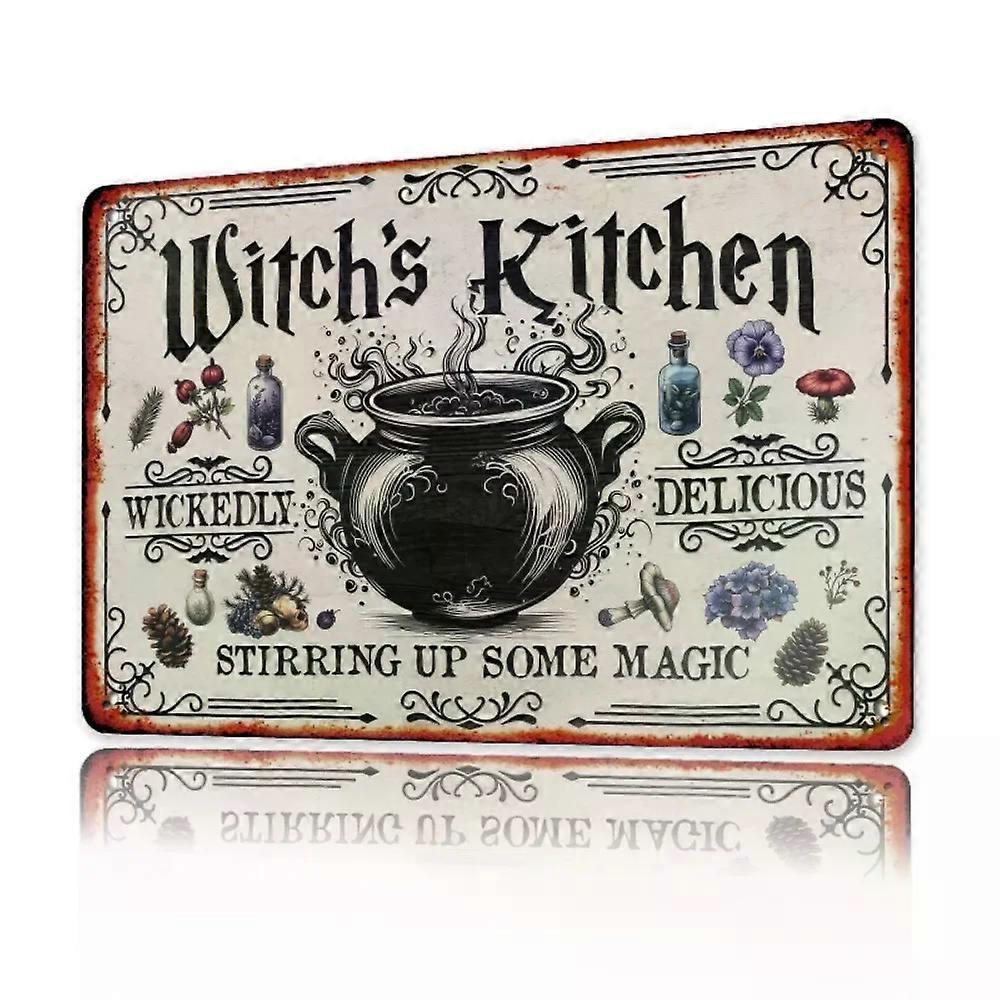 Vintage Witch's Kitchen Metal Tin Sign - Iron Wall Hanging Art, Witchcraft Theme Decor for Halloween Home Multipurpose Use