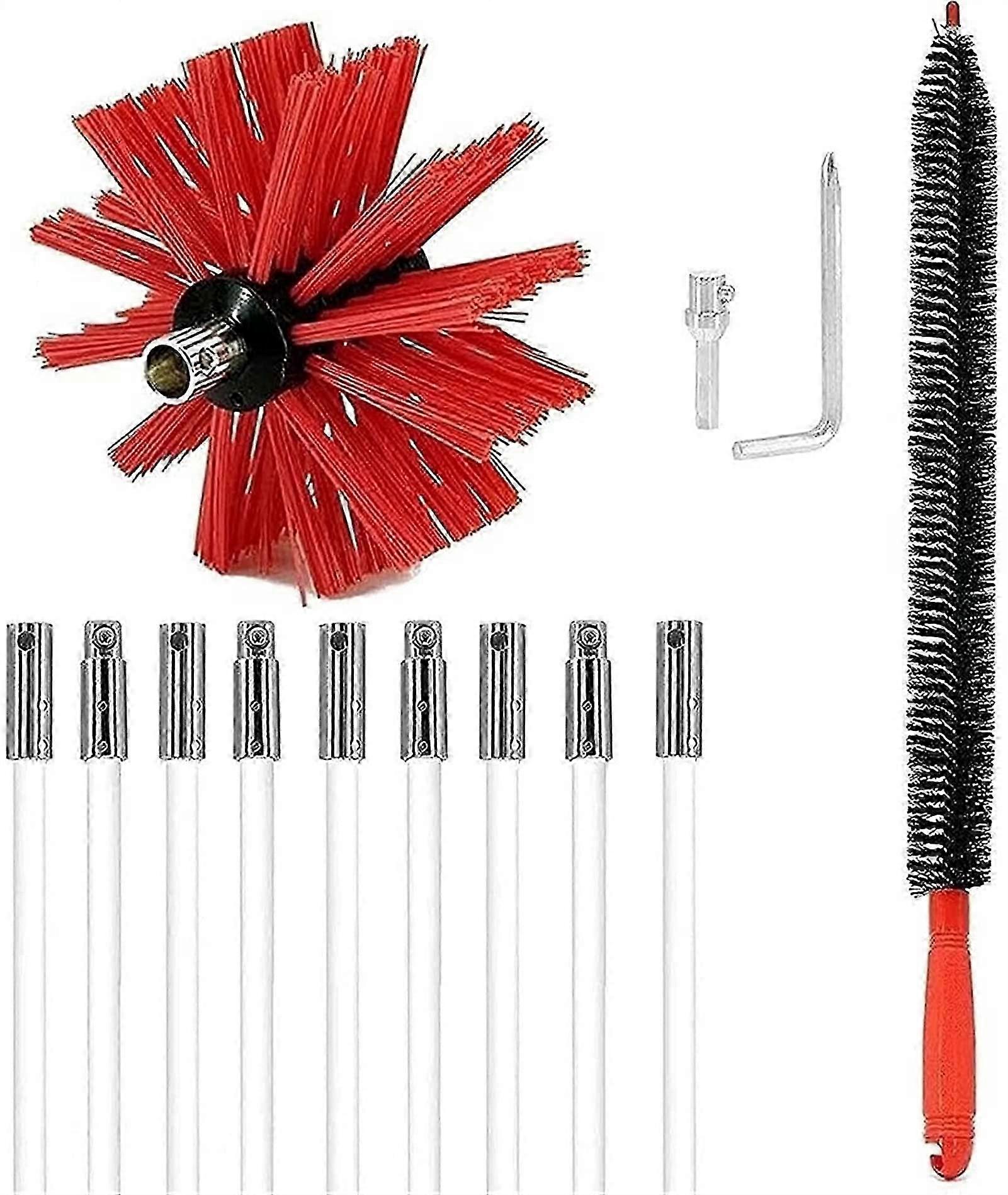 Fireplace Vent Cleaning Brush Set with Nylon Rods and Brush Heads