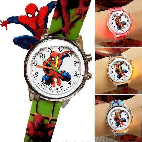 Children's Watch with Flashing Lights Spiderman Watch Silicone Strap red