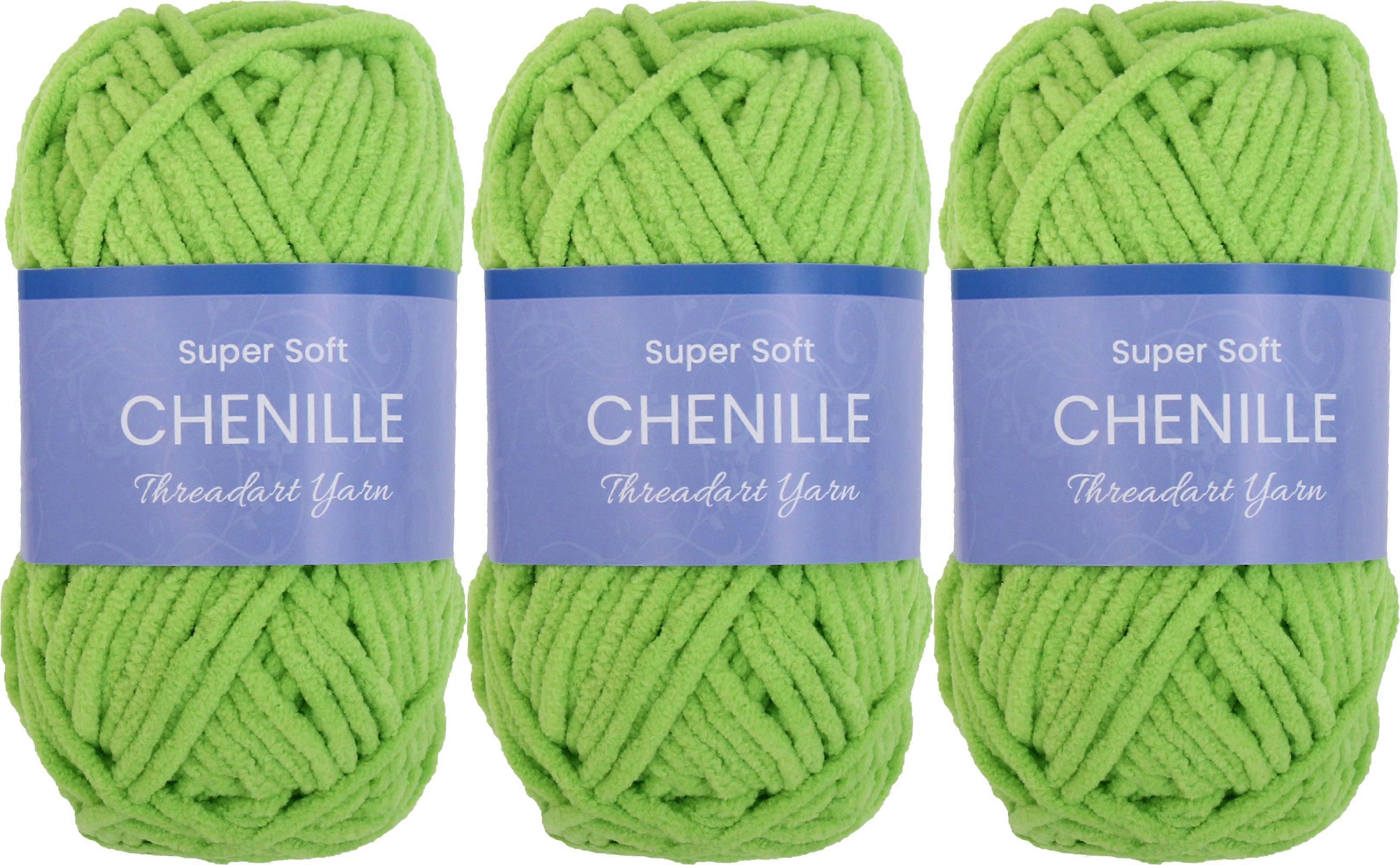 3 Pack ThreadArt Chenille Yarn for Crocheting, Knitting, Amigurumi, Super Soft Plush Velvet Yarn - 50 Gram 60 yds #5 Fluffy Yarn Skeins - Lime Green