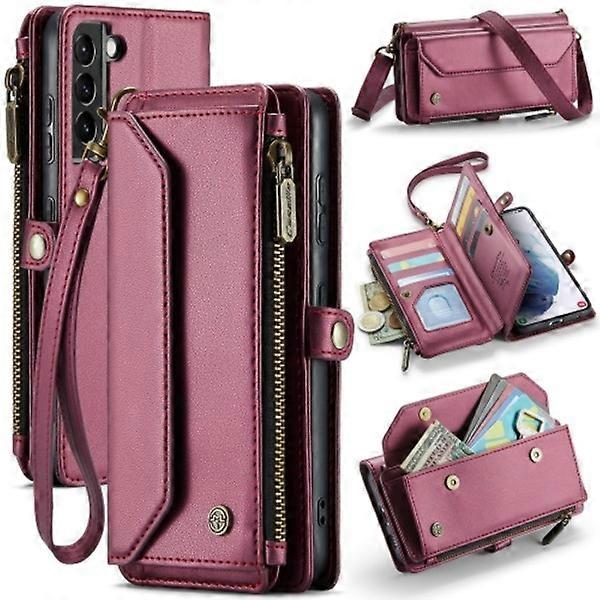 Compatible with Samsung Galaxy S21+ 5G CaseMe C36 with card slot, zipper, RFID protection, leather Burgundy