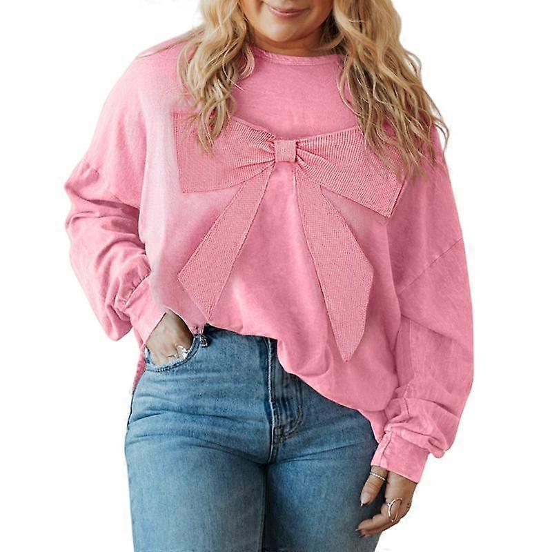 Plus Size Sweatshirt Waffle Bowknot Patchwork Mineral Wash Drop Shoulder Womenswear