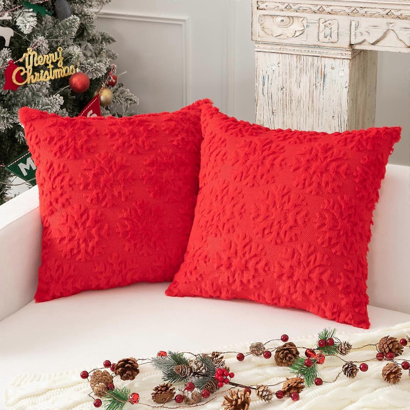 Christmas Pillow Covers 18x18 Inch Set of 2, Soft Plush Faux Fur Snowflake Decorative Cushion Cases for Couch, Sofa, Holiday, Winter Festivals